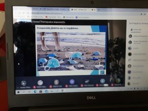 Τέλος, συζητήσαμε για μια νέα μορφή ρύπανσης που έφερε στο προσκήνιο η πανδημία του κορωνοϊού, αυτή των μασκών προστασίας μιας χρήσης και γαντιών μιας χρήσης. Καθημερινά, γινόμαστε όλοι μάρτυρες αυτής της νέας μορφής ρύπανσης, καθώς αντικρύζουμε μάσκες μιας χρήσης να βρίσκονται πεταμένες παντού. Στους δρόμους, στα μέσα μαζικής μεταφοράς, στα πάρκα και τελικά στις παραλίες και μέσα στη θάλασσα.