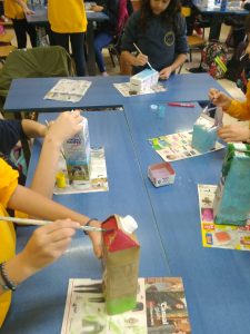 Πώς μπορούμε να αποφύγουμε μεγάλο μέρος των σκουπιδιών; Χρησιμοποιώντας ξανά διάφορα υλικά με διαφορετικό τρόπο. Και επειδή η θεωρία δεν αρκεί, οι μαθητές έκαναν πράξη όσα έμαθαν και μπαίνοντας στο κλίμα των γιορτών, έφτιαξαν χριστουγεννιάτικα στολίδια-κάλτσες χρησιμοποιώντας κουτιά δημητριακών, παλιά χαρτόνια και άλλα παρόμοια υλικά.